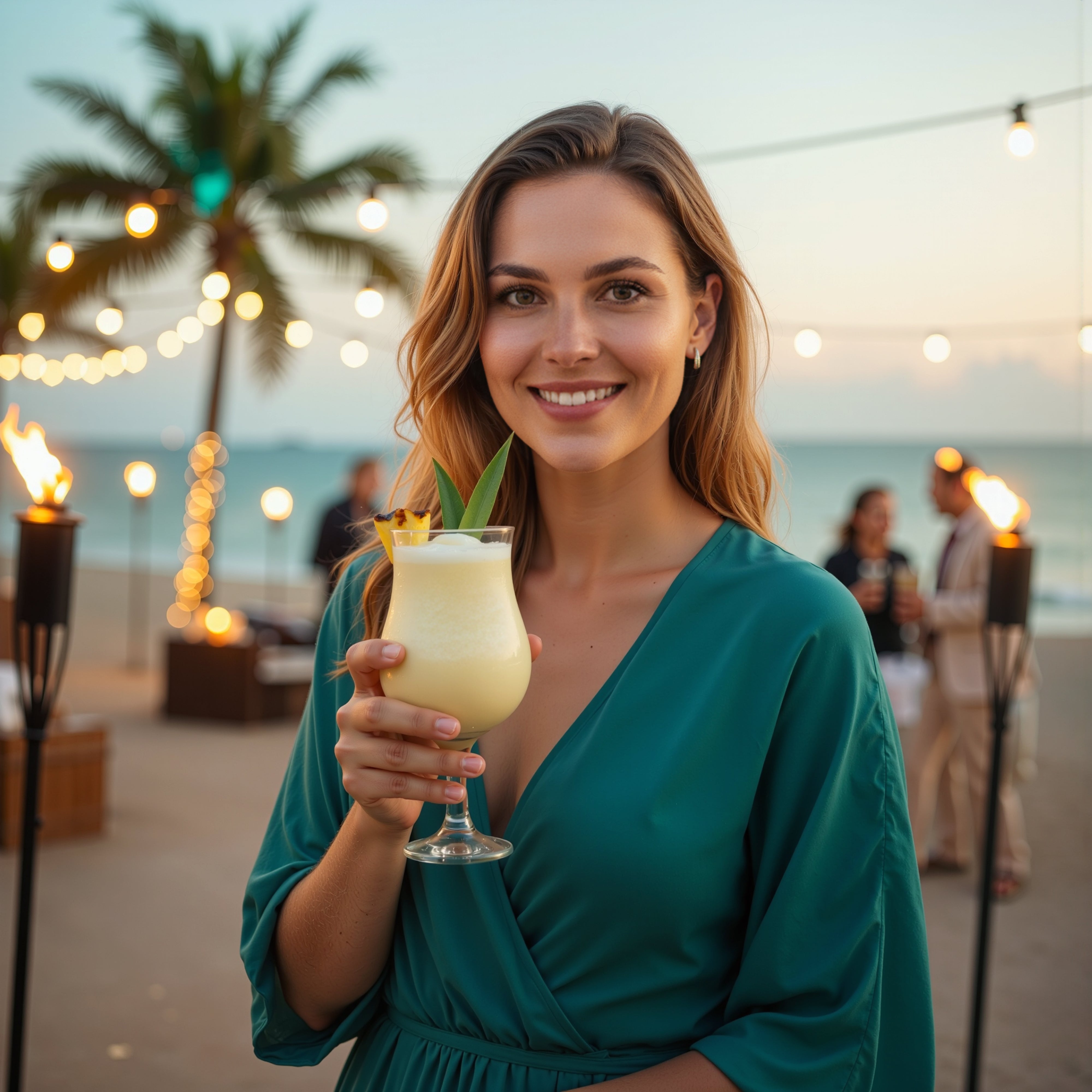Cocktail based on 36% pina colada, pineapple juice and rum