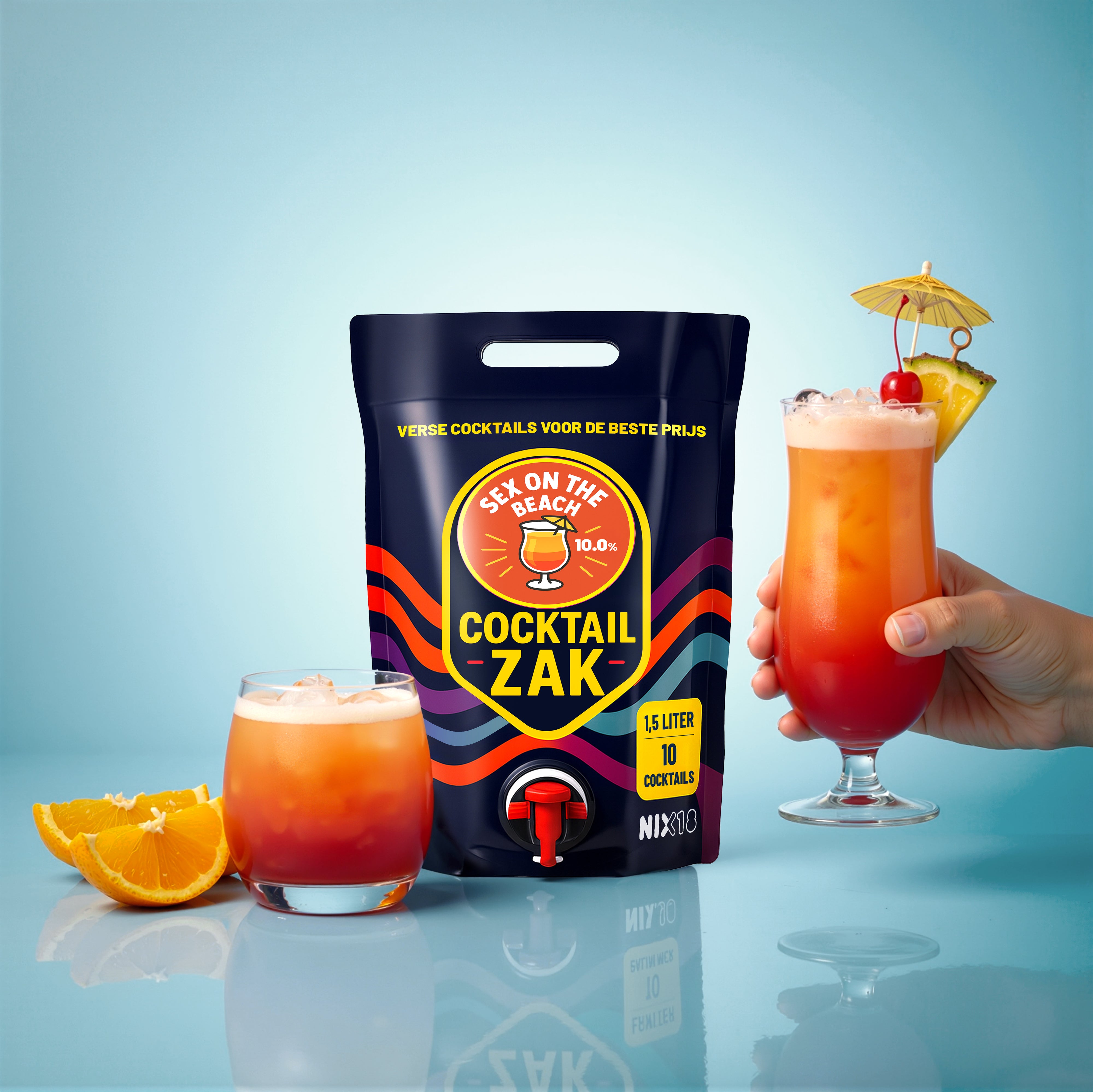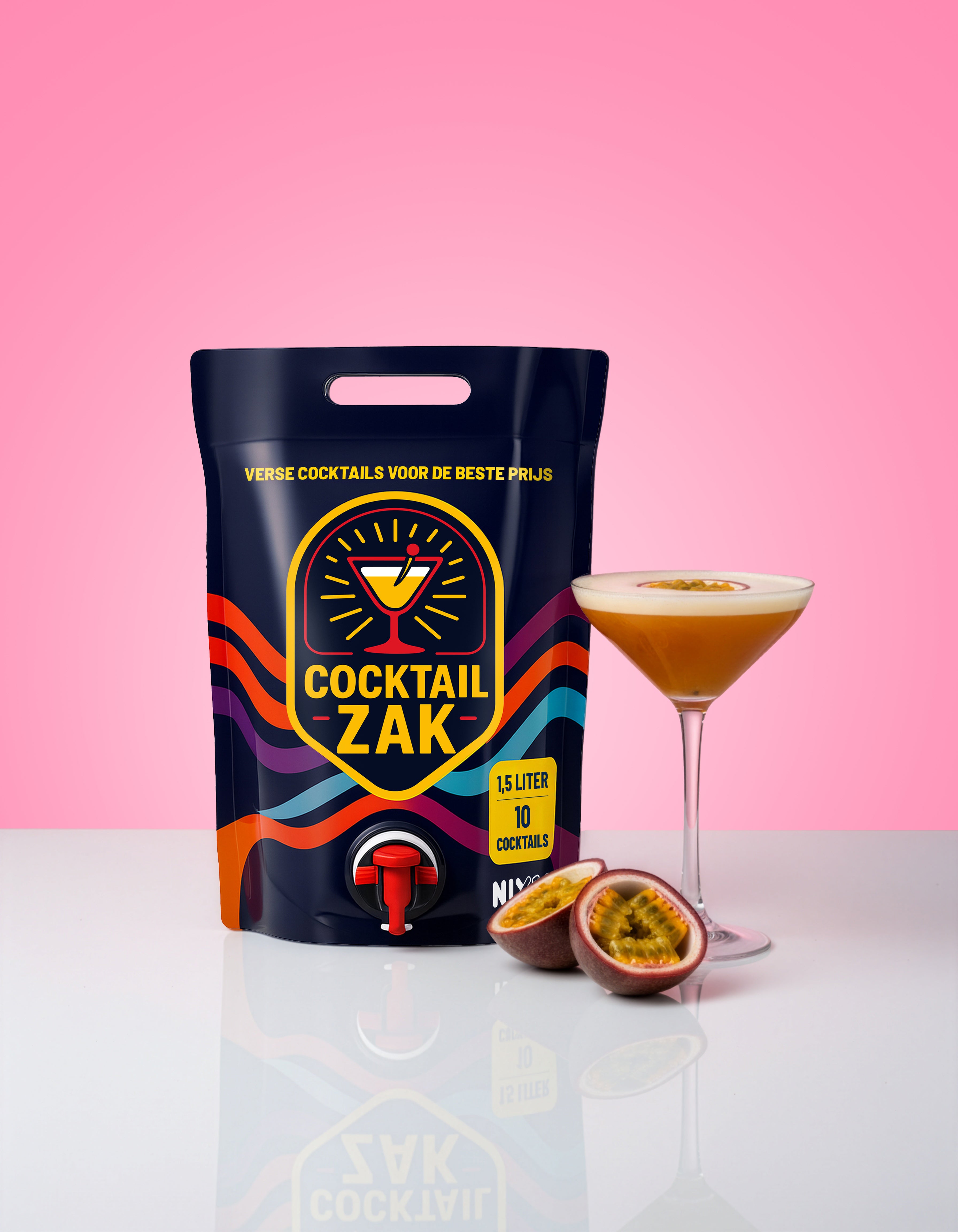Genießen Sie Cocktails in Barqualität ohne Wartezeit. Der Cocktailzak ist Ihr direkter Draht zu frischen, authentischen Aromen: Einfach über den eleganten Zapfhahn direkt ins Glas gießen.