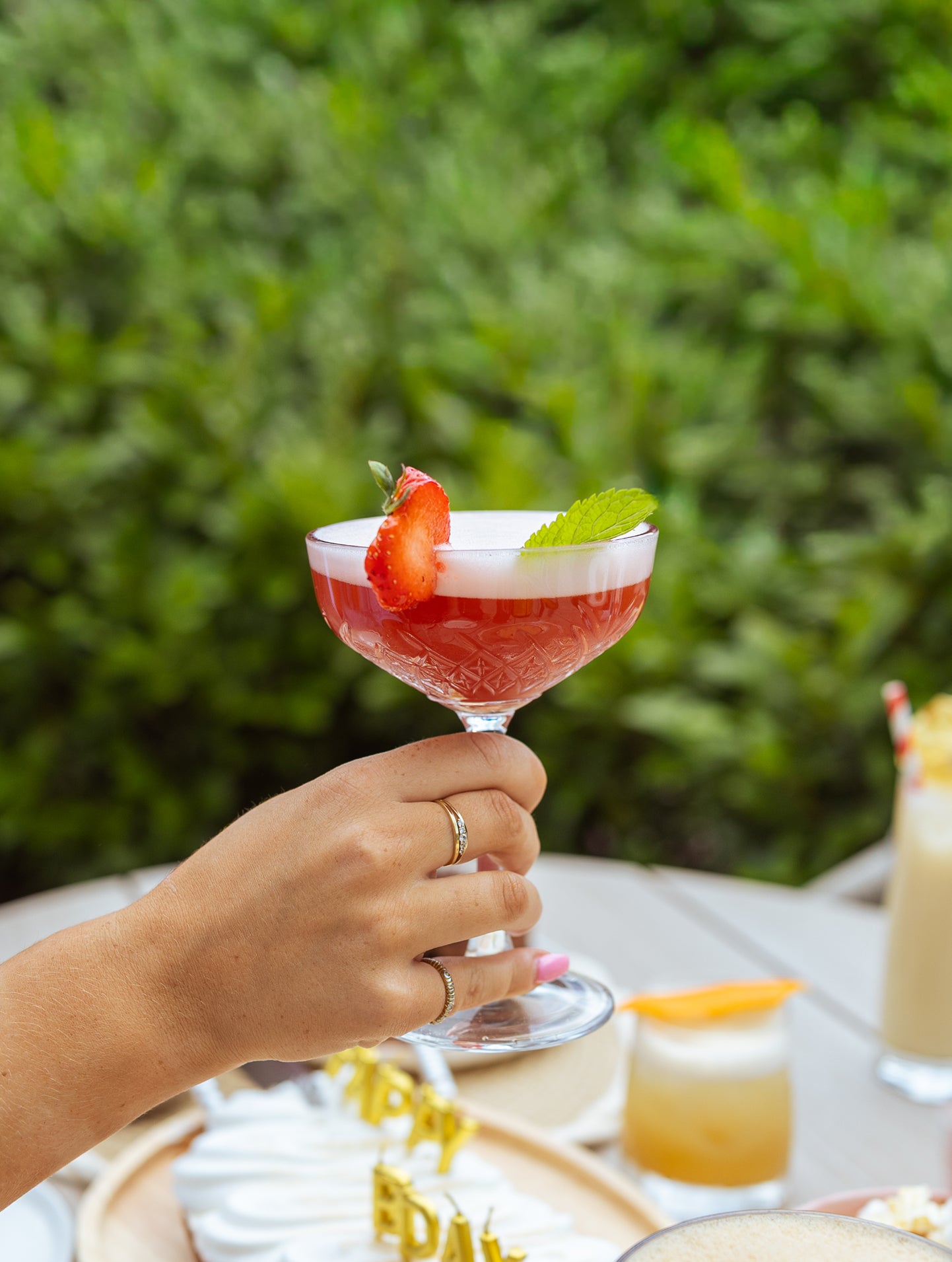 Cocktail op basis van wodka, aardbeienpuree, vlierbloesemlikeur en citroensap. Bevat: sulfiet